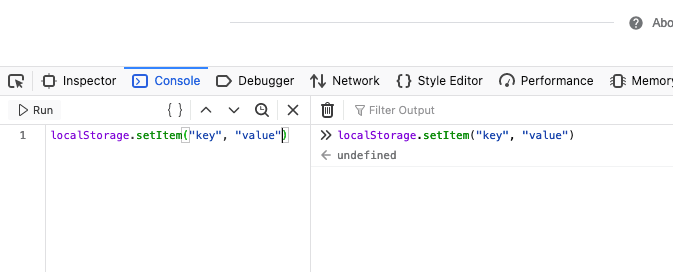 - localStorage.setItem(key, value)